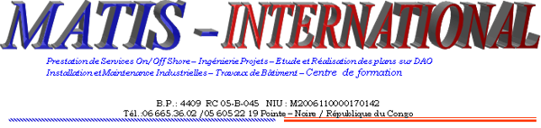 Nous sommes actuellement basé en Rép. du Congo, dans la ville de Pointe-Noire. Nous avons vocation à intervenir dans toute l’étendue du territoire national.
